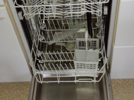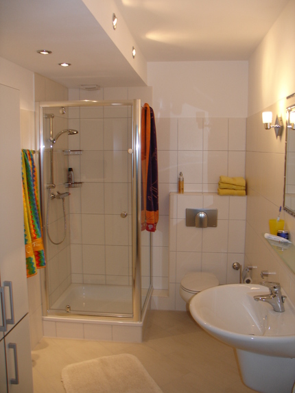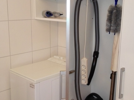 In the bathroom you'll also find the washing machine and a cupboard with hoover and cleaning utensils.