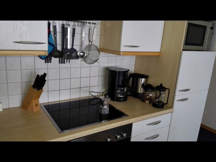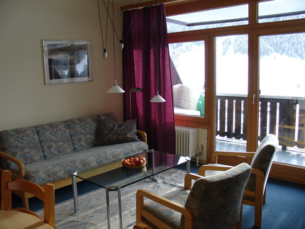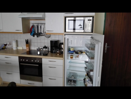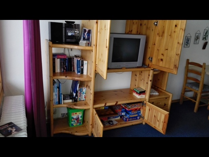 The living room has a glas front at the slope side and you can reach the balcony there. A TV Set with DVD belongs to the equippment, as well as several card and board games. Moreover you'll find raquets for table tennis which you can use in the recreation room of Haus Sonnenbichl.