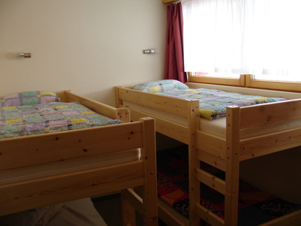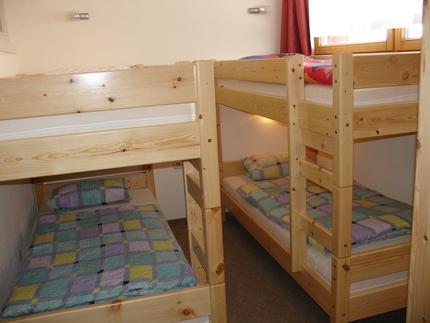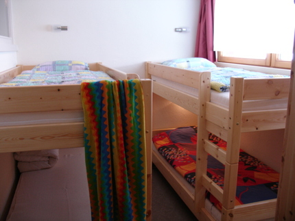 The second bedroom with four beds (each 1m x 2m) und a wardrobe.